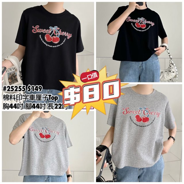 (現貨) #25255 BONNIE棉料印字車厘子Top (胸44吋 腳44吋 長22吋)