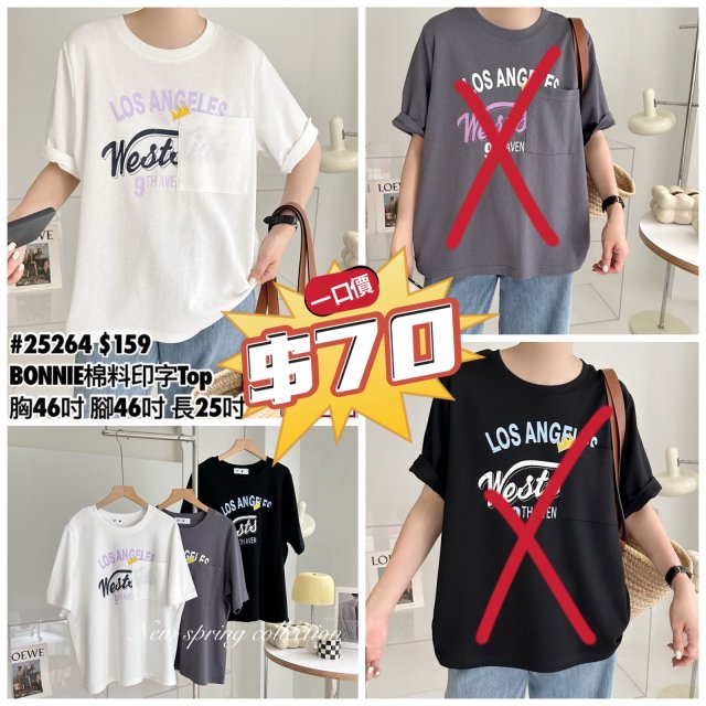 (現貨) #25264 BONNIE棉料印字Top (胸46吋 腳46吋 長25吋)