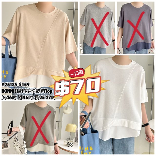 (現貨) #25135 BONNIE棉料拼快乾料Top (胸46吋 腳46吋 長25-27吋)