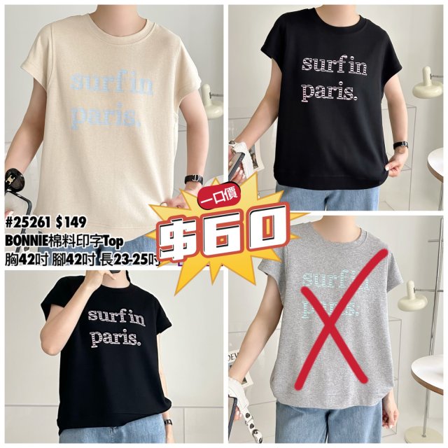 (現貨) #25261 BONNIE棉料印字Top (胸42吋 腳42吋 長23-25吋)