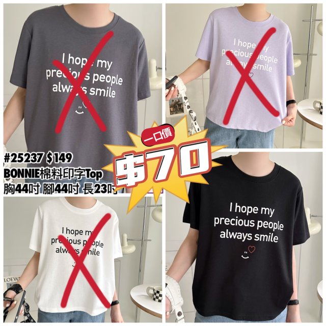(現貨) #25237 BONNIE棉料印字Top (胸44吋 腳44吋 長23吋)