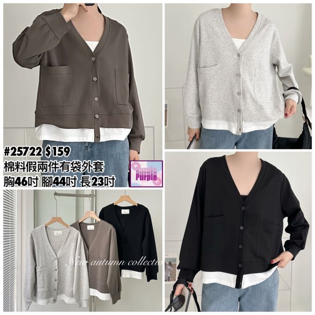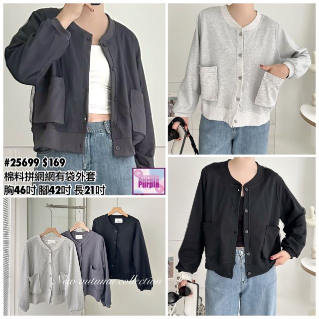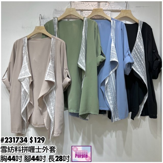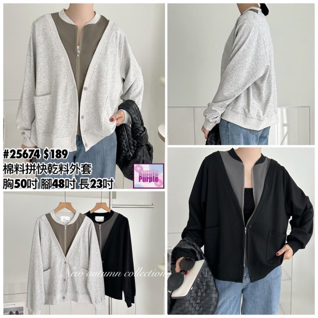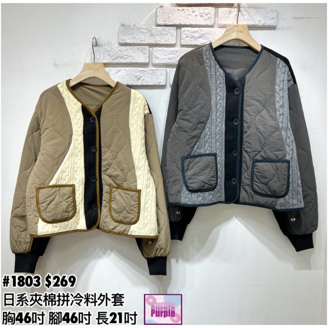(訂貨大約20天) #237956 針織料拼布外套 (胸50吋 腳46吋 長25吋)