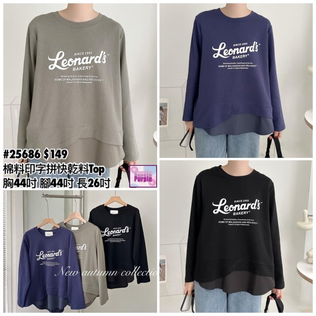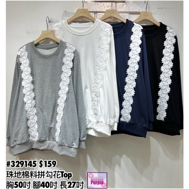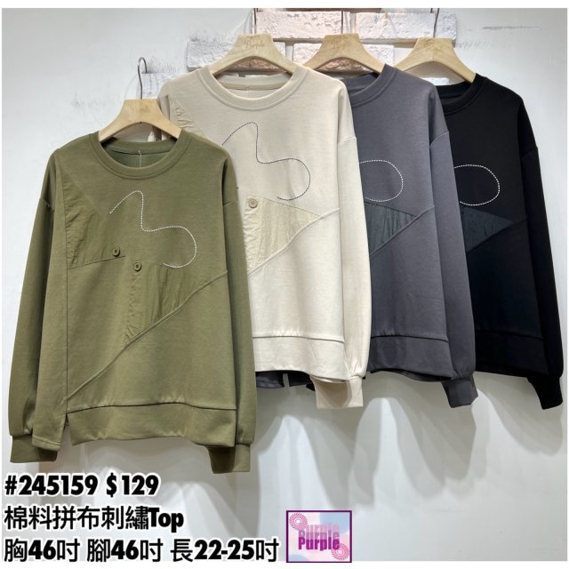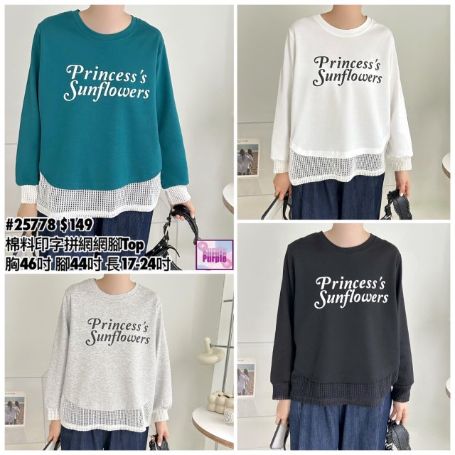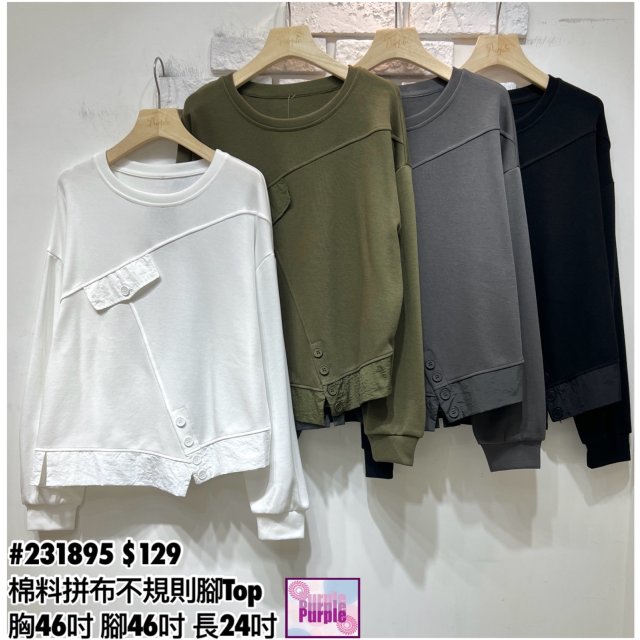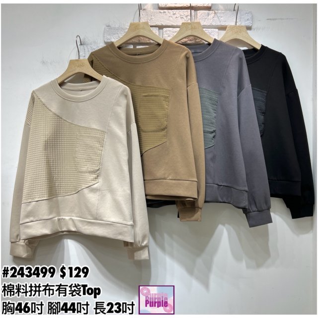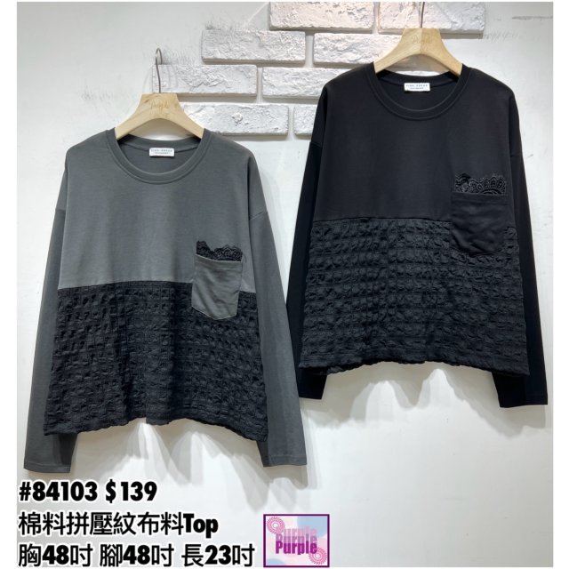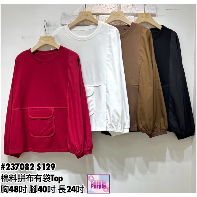 (訂貨大約20天) #237841 針織棉料拼布Top (胸52吋 腳52吋 長23吋)