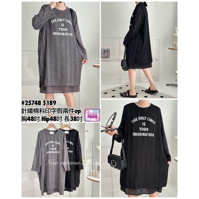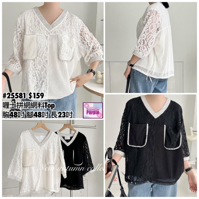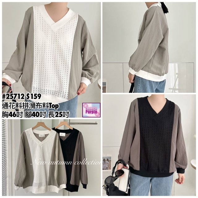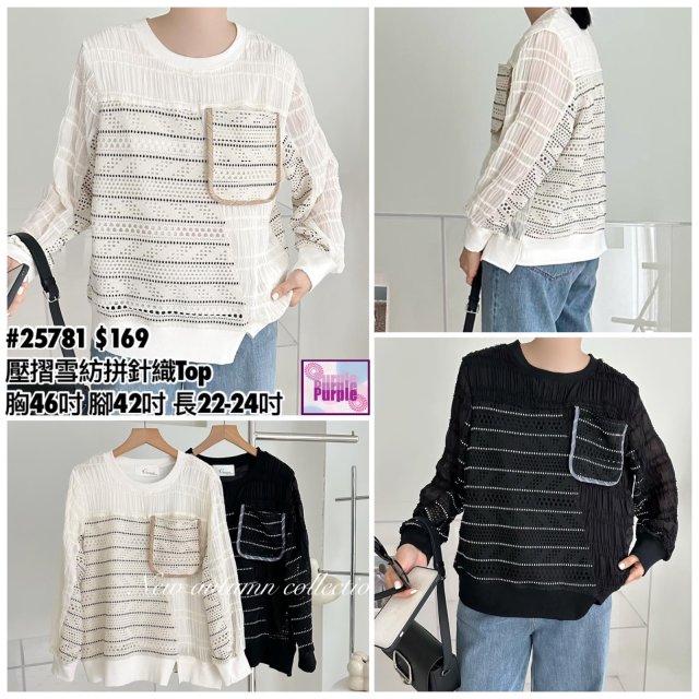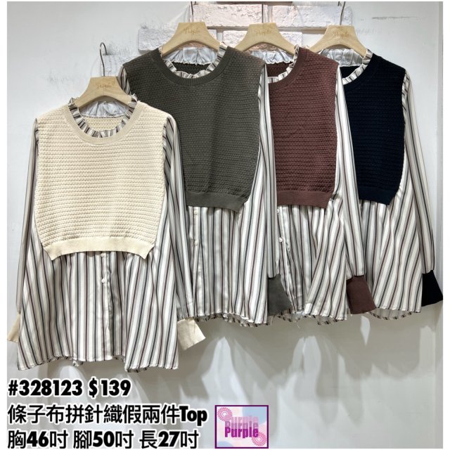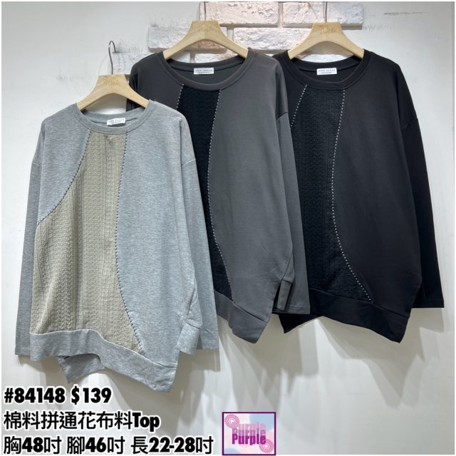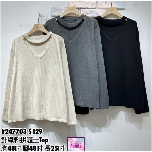 (訂貨大約20天) #247703 針織料拼喱士Top (胸48吋 腳48吋 長25吋)