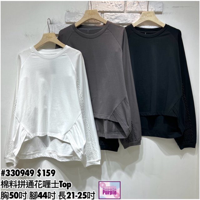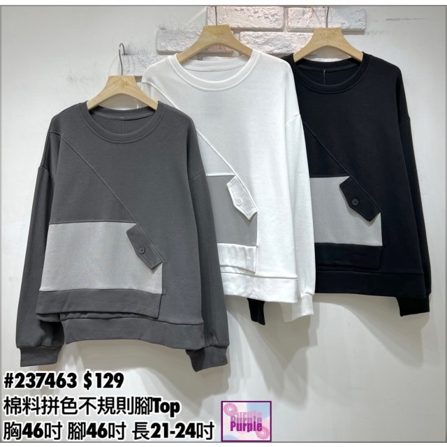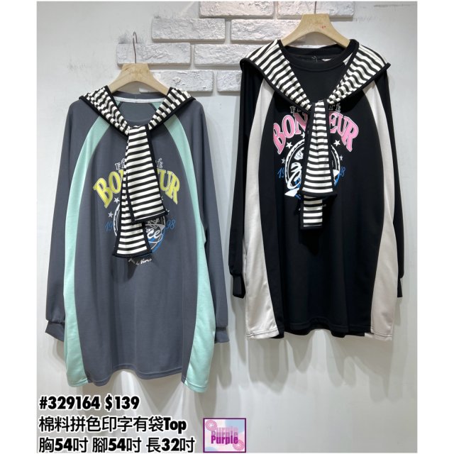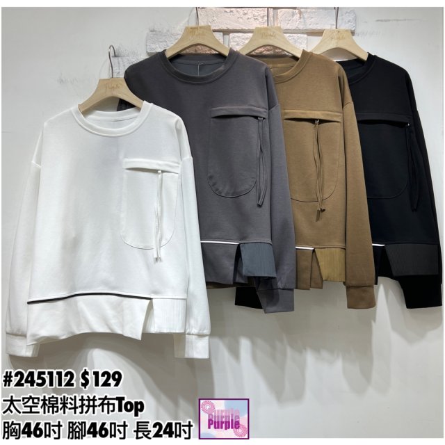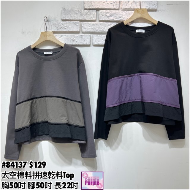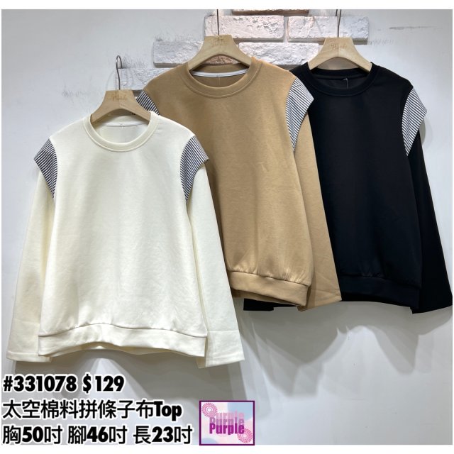 (訂貨大約20天) #334838 太空棉料拼橫間Top (胸48吋 腳46吋 長24吋)