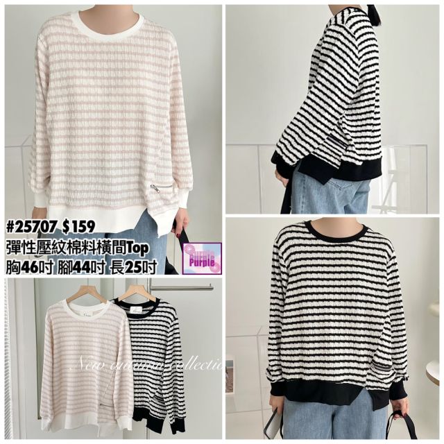 (現貨) #331078 太空棉料拼條子布Top (胸50吋 腳46吋 長23吋)