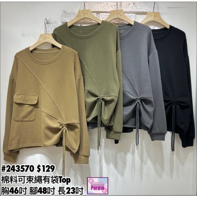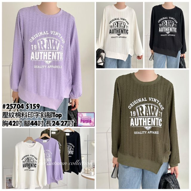 (訂貨大約20天) #333736 超彈性棉料毛底Top (胸46吋 腳46吋 長26吋)