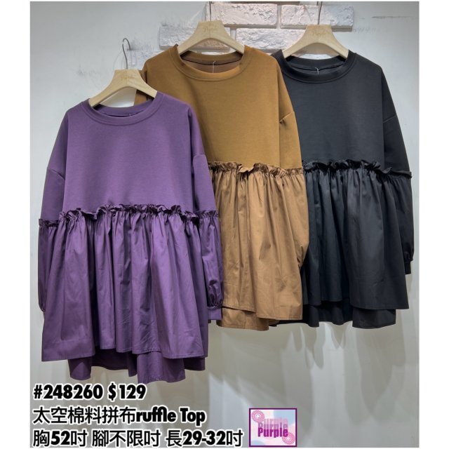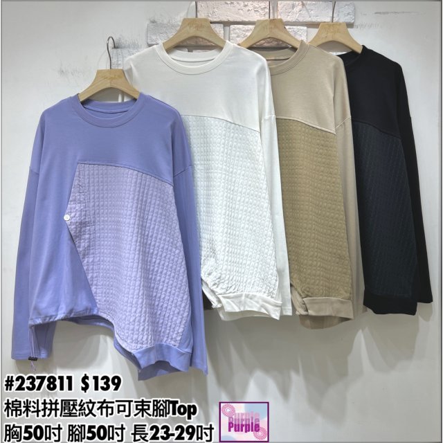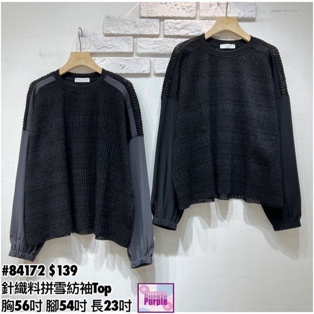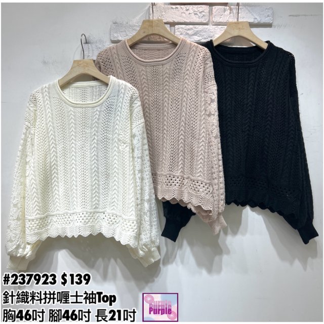 (訂貨大約20天) #237923 針織料拼喱士袖Top (胸46吋 腳46吋 長21吋)