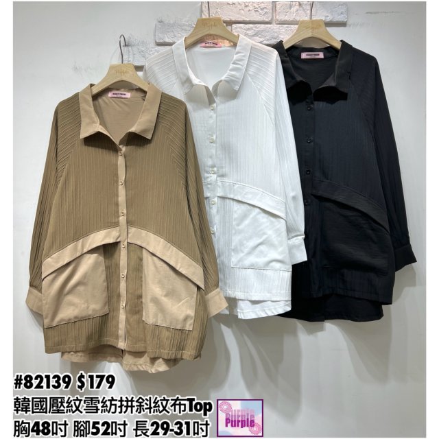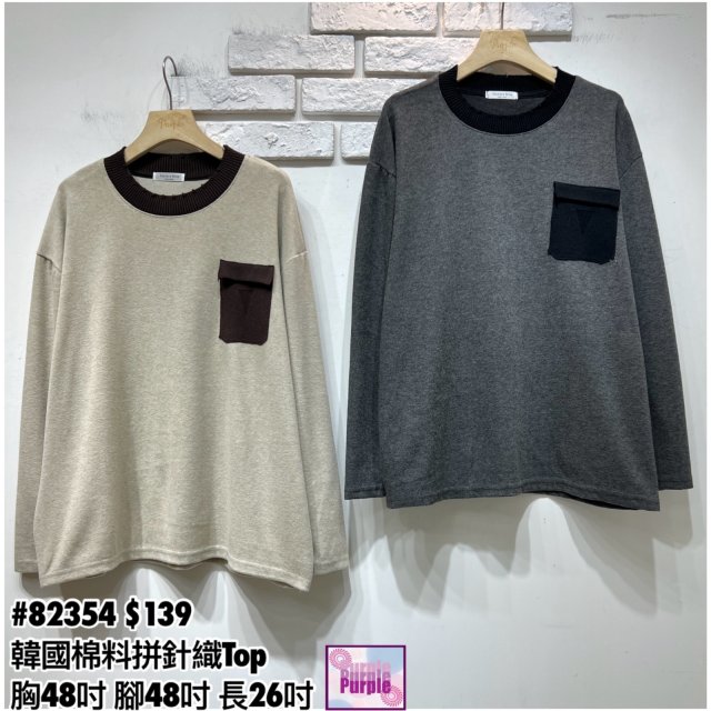 (訂貨大約20天) #82354 韓國棉料拼針織料領割爛款Top (胸48吋 腳48吋 長26吋)
