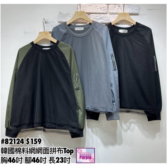 (現貨) #82124 韓國棉料網網面拼布Top (胸46吋 腳46吋 長23吋)