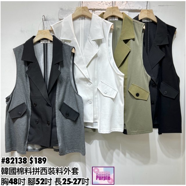 (訂貨大約20天) #82294 韓國跣水料夾棉背心外套 (胸52吋 腳48吋 長24吋)