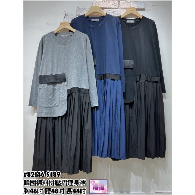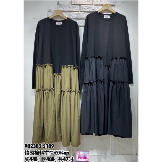 (訂貨大約20天) #82382 韓國棉料拼快乾料連身裙 (胸44吋 腰48吋 長47吋)