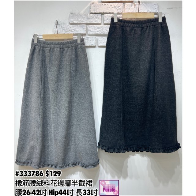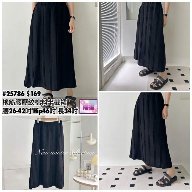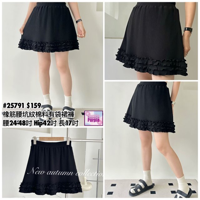 (訂貨大約20天) #245109 橡筋腰快乾料泡泡腳半截裙 (腰26-42吋 Hip70吋 長34吋)