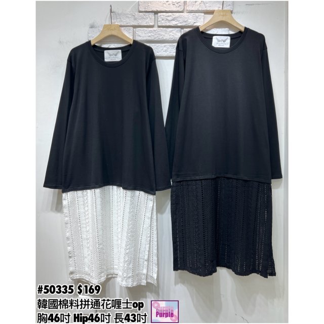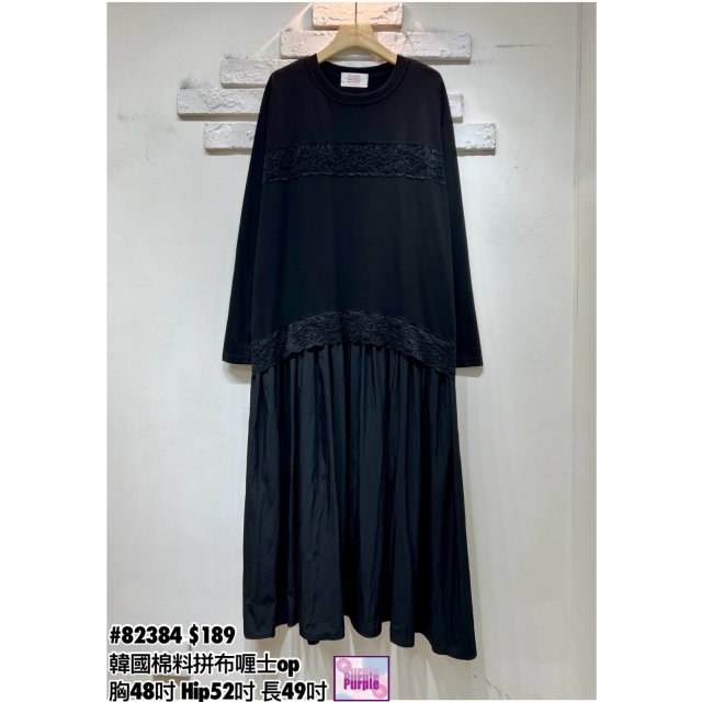(訂貨大約20天) #82384 韓國棉料拼布喱士連身裙 (胸48吋 Hip52吋 長49吋)