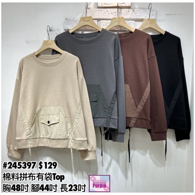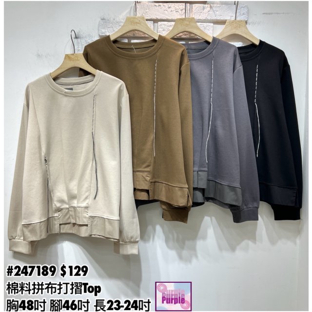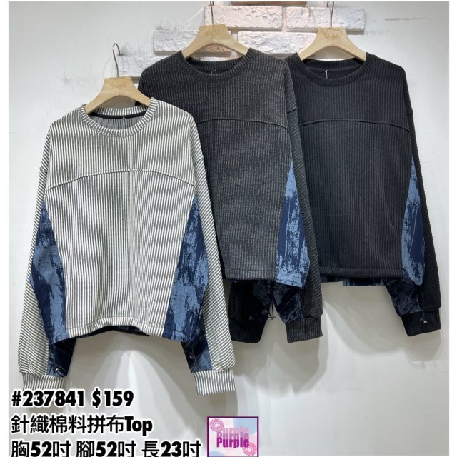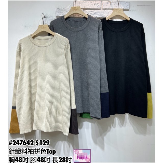 (訂貨大約20天) #247642 針織料袖拼色Top (胸48吋 腳48吋 長28吋)