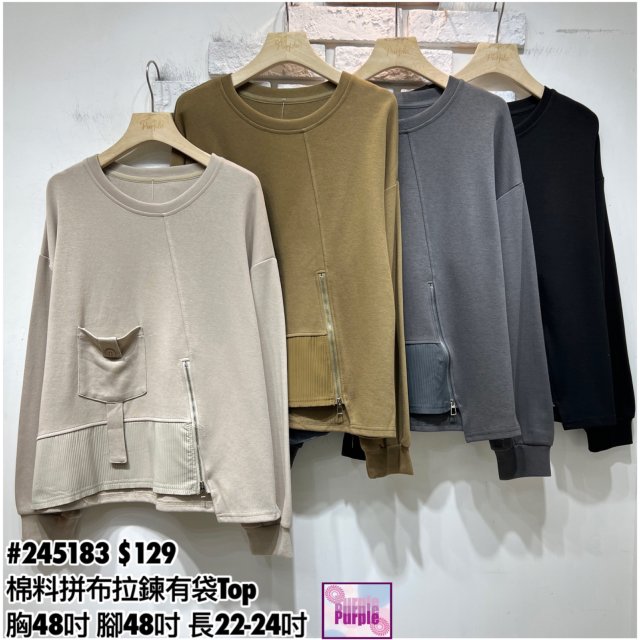 (現貨) #84003 棉料拼布拉鍊款Top (胸48吋 腳46吋 長28吋)