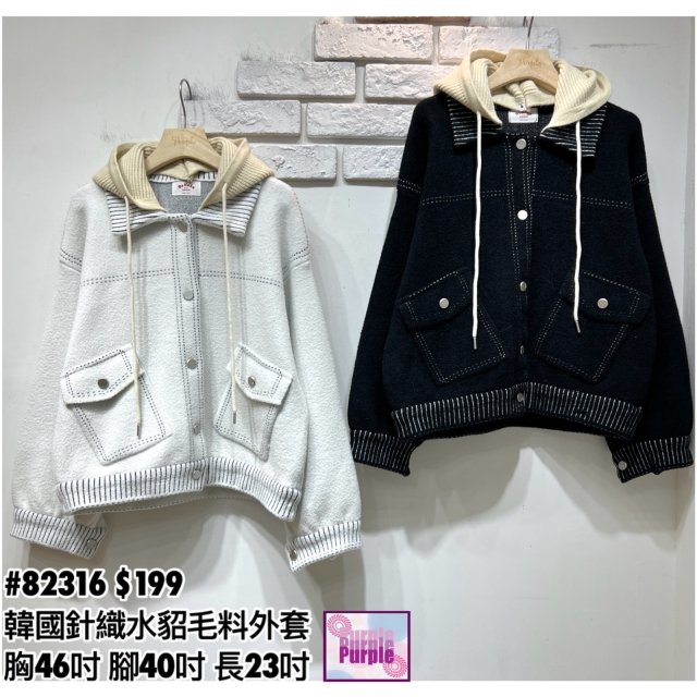 (訂貨大約20天) #82316 韓國針織水貂毛料外套 (胸46吋 腳40吋 長23吋)