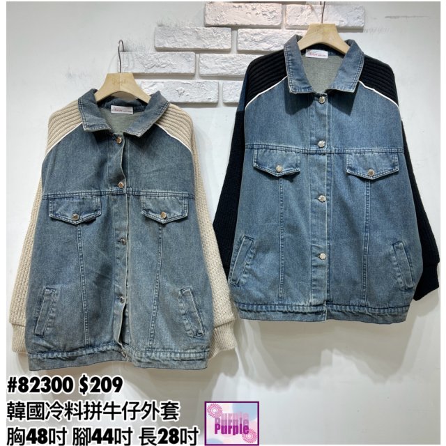 (現貨) #333992 針織冷料拼牛仔外套 (胸50吋 腳50吋 長25吋)