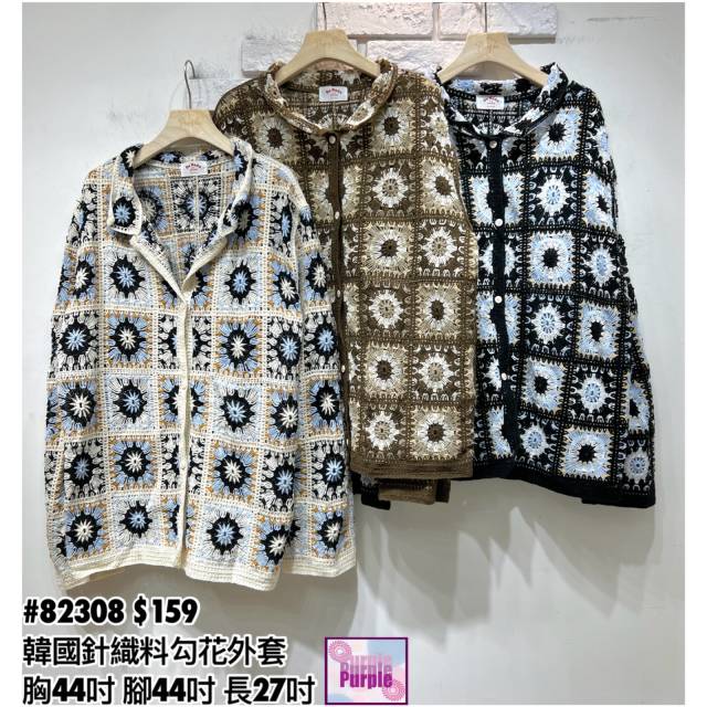 (現貨) #82310 韓國針織料勾花外套 (胸46吋 腳46吋 長26吋)