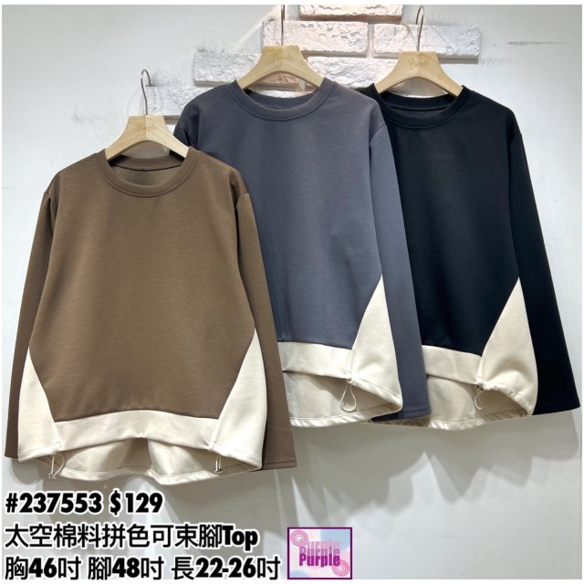 (訂貨大約20天) #237553 太空棉料拼色可束腳Top (胸46吋 腳48吋 長22-26吋)