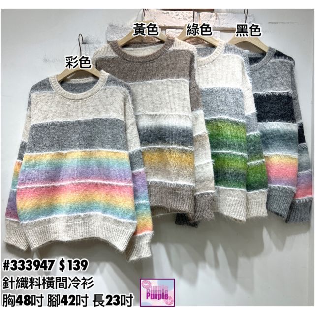(訂貨大約20天) #333947 針織料橫間冷衫 (胸48吋 腳42吋 長23吋)