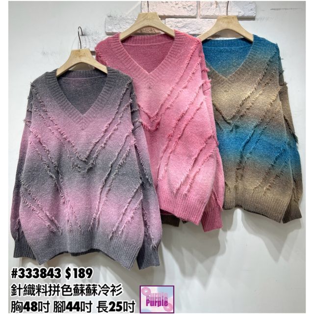 (現貨) #333843 針織料拼色蘇蘇冷衫 (胸48吋 腳44吋 長25吋)