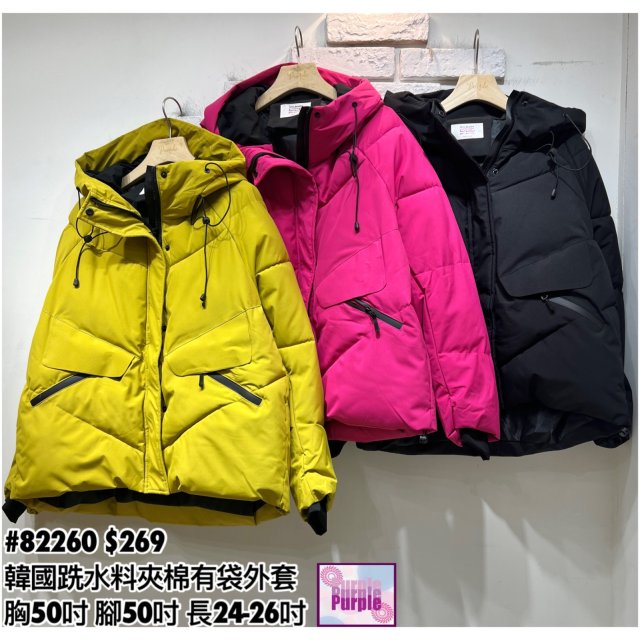 (訂貨大約20天) #82260 韓國跣水料夾棉有袋外套 (胸50吋 腳50吋 長24-26吋)