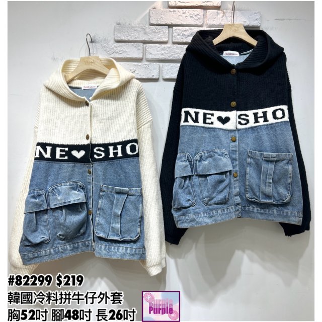 (訂貨大約20天) #82299 韓國針織冷料拼牛仔有袋外套 (胸52吋 腳48吋 長26吋)