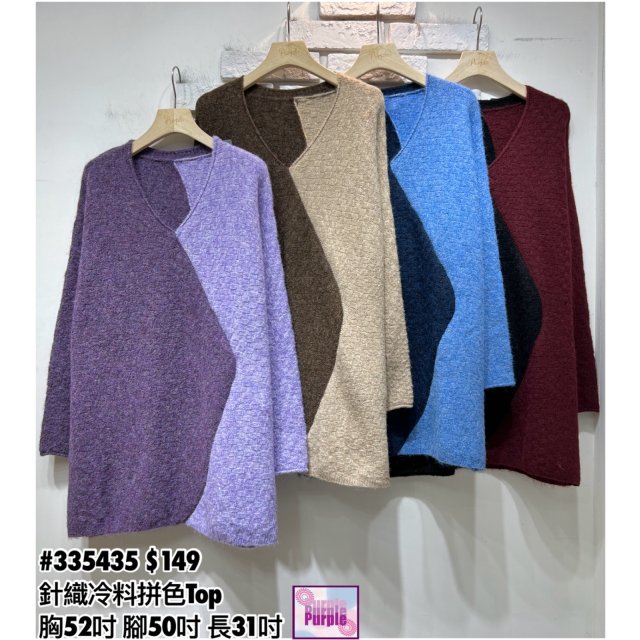 (訂貨大約20天) #335435 針織冷料拼色Top (胸52吋 腳50吋 長31吋)