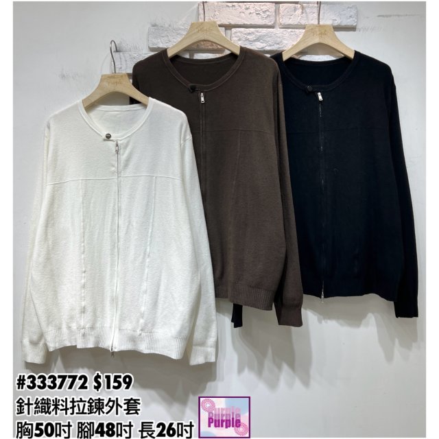 (訂貨大約20天) #333772 針織料拉鍊外套 (胸50吋 腳48吋 長26吋)