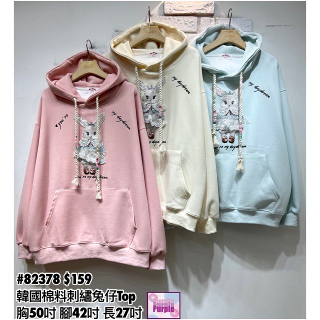 (訂貨大約20天) #82378 韓國棉料刺繡兔仔Top (胸50吋 腳42吋 長27吋)