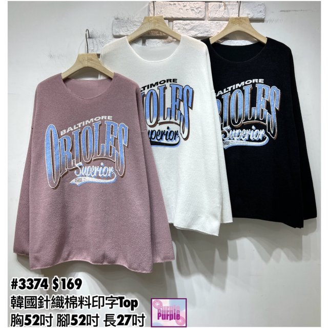 (訂貨大約20天) #3374 韓國針織棉料印字Top (胸52吋 腳52吋 長27吋)