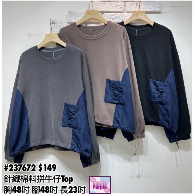 (訂貨大約20天) #237672 針織棉料拼牛仔Top (胸48吋 腳48吋 長23吋)