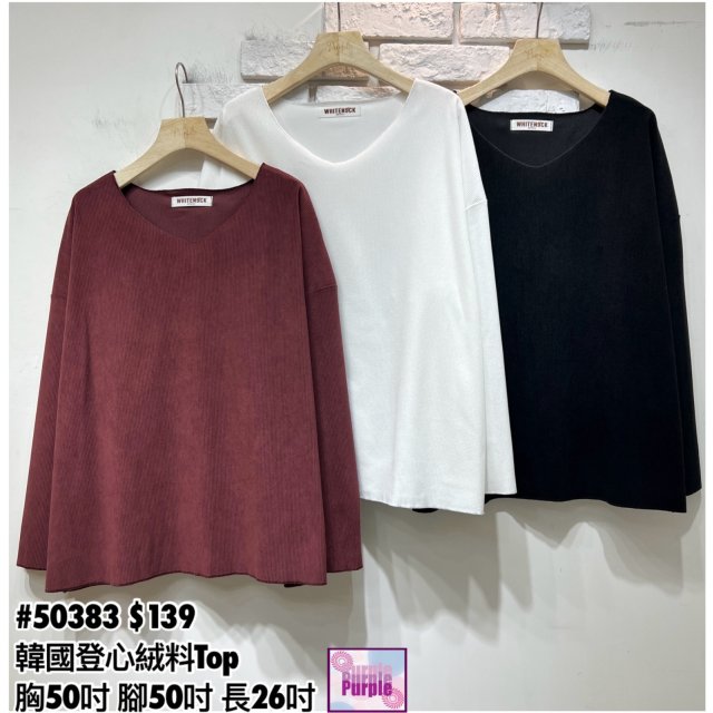 (訂貨大約20天) #50383 韓國登心絨料Top (胸50吋 腳50吋 長26吋)