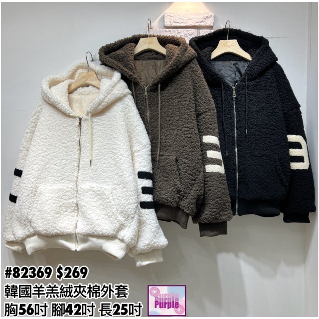 (訂貨大約20天) #82369 韓國羊羔絨夾棉有袋外套 (胸56吋 腳42吋 長25吋)