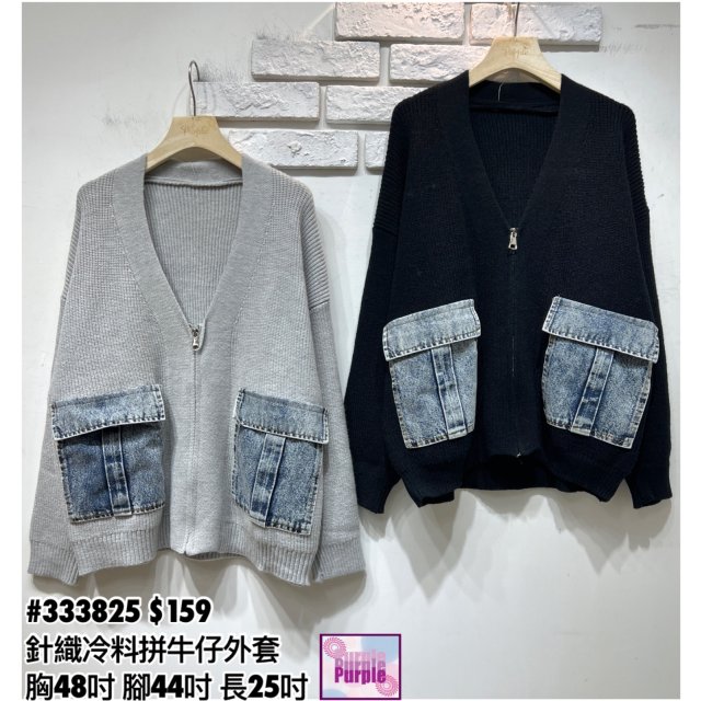 (訂貨大約20天) #333825 針織冷料拼牛仔袋外套 (胸48吋 腳44吋 長25吋)