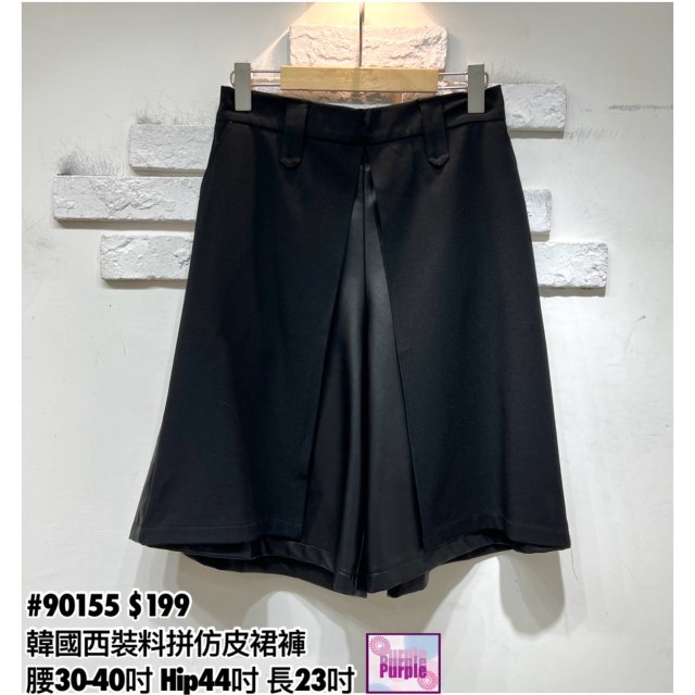 (訂貨大約20天) #90155 韓國西裝料拼仿皮有袋裙褲 (腰30-40吋 Hip44吋 長23吋)