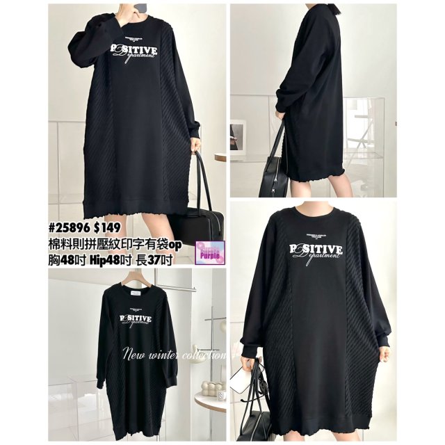 (現貨) #25896 BONNIE棉料則拼壓紋印字有袋連身裙 (胸48吋 Hip48吋 長37吋)