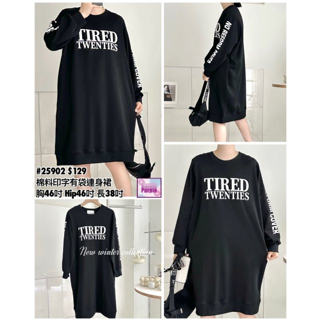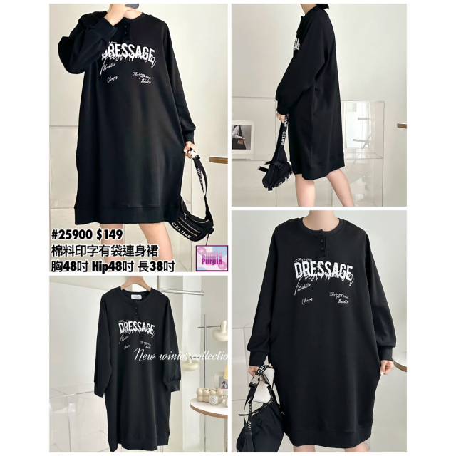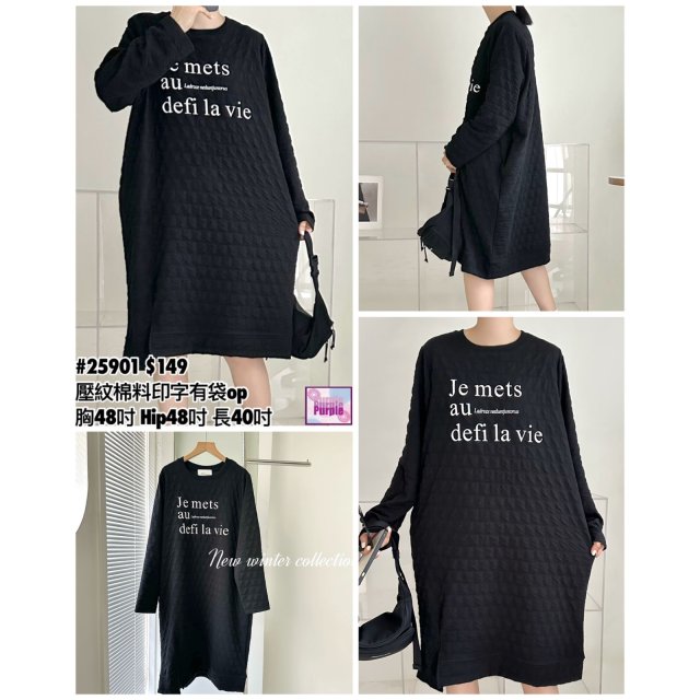 (現貨) #25901 BONNIE壓紋棉料印字有袋連身裙 (胸48吋 Hip48吋 長40吋)