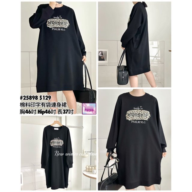 (現貨) #25898 BONNIE棉料印字有袋連身裙 (胸46吋 Hip46吋 長37吋)
