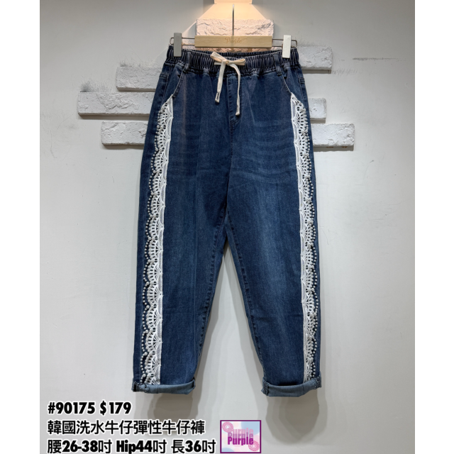 (訂貨大約20天) #90175 韓國洗水牛仔拼勾花喱士彈性牛仔褲 (腰26-38吋 Hip44吋 長36吋)