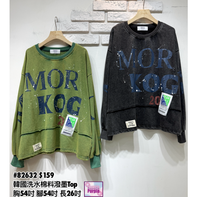 (訂貨大約20天) #82632 韓國洗水棉料潑墨印字Top (胸54吋 腳54吋 長26吋)