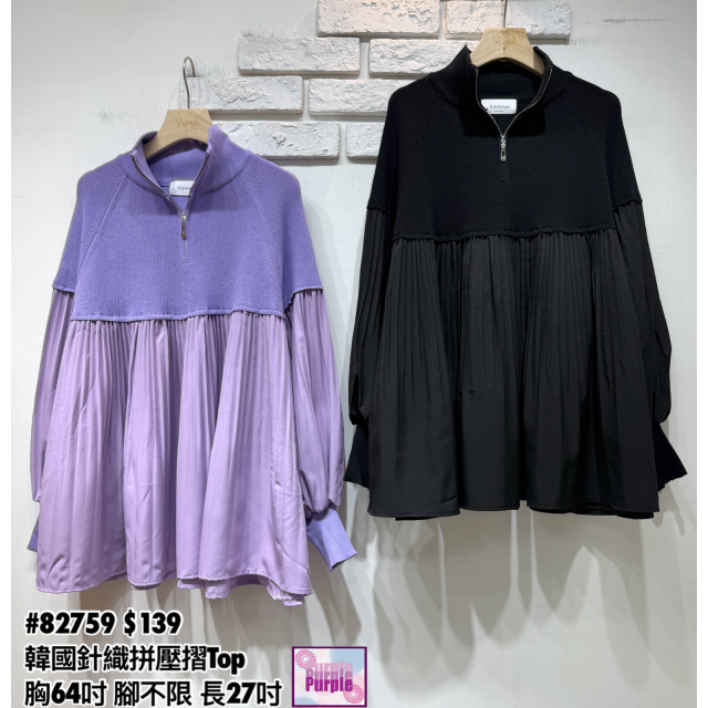 (訂貨大約20天) #82759 韓國針織拼壓摺布料Top (胸64吋 長27吋)