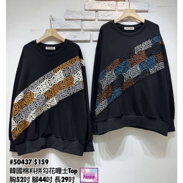 (訂貨大約20天) #50437 韓國珠地棉料拼勾花喱士Top (胸52吋 腳44吋 長29吋)
