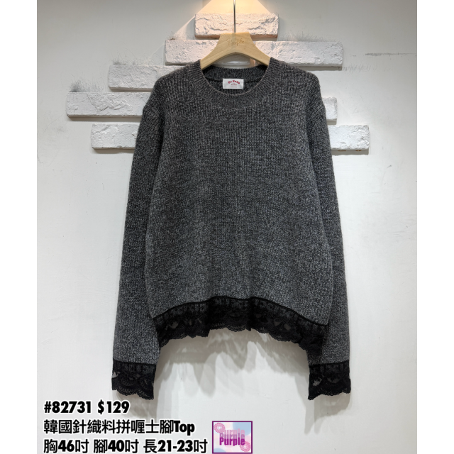 (訂貨大約20天) #82731 韓國針織料拼喱士腳Top (胸46吋 腳40吋 長21-23吋