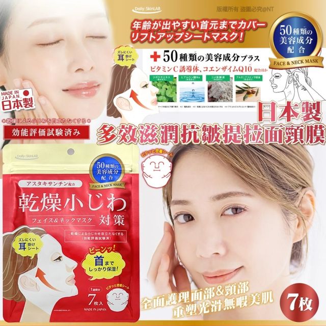 (約3月中到貨) #5712 🇯🇵日本製|多效滋潤抗皺提拉面頸膜一包7入(一套2包)💕