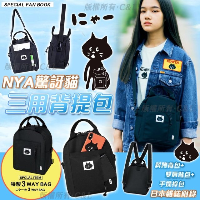 (現貨) #5448 🌈日本🇯🇵NYA驚訝貓三用背提包💕
