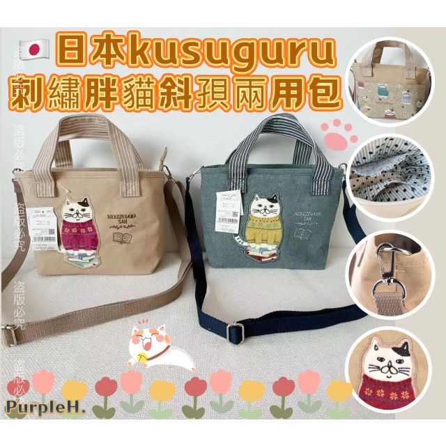 (現貨) #5339 🇯🇵日本文青品牌kusuguru刺繡胖貓咪斜孭兩用手提包