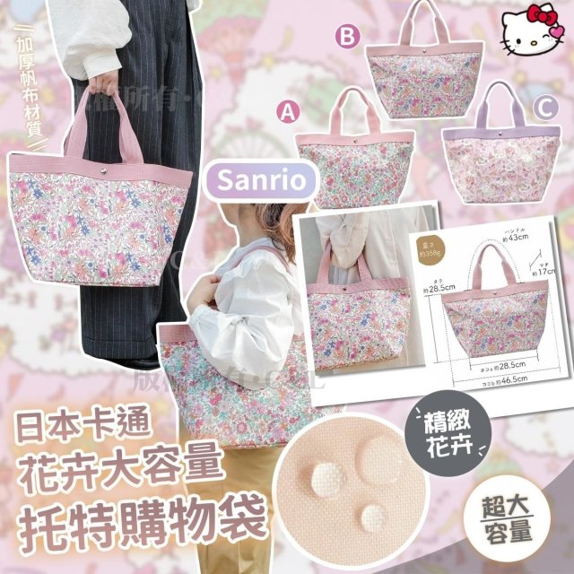 (現貨) #5440 🌈日本卡通花卉大容量托特購物袋💕