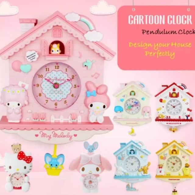 (現貨) #5384 🌈卡通搖擺掛鐘🕰️Cartoon swing wall clock💕